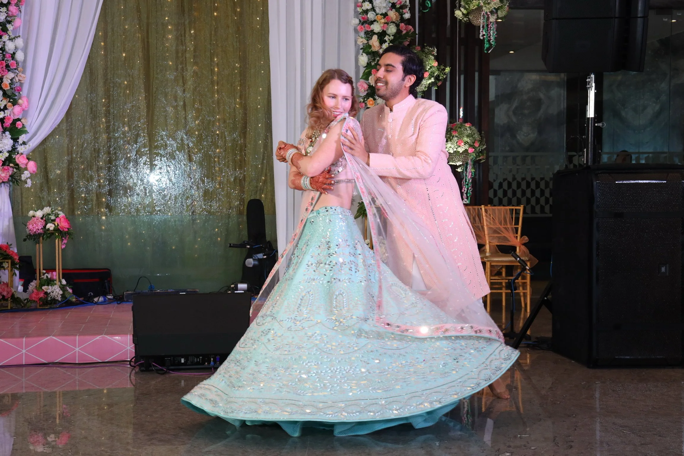 Attire: The cocktail hour and sangeet following the ceremony with no time to change.